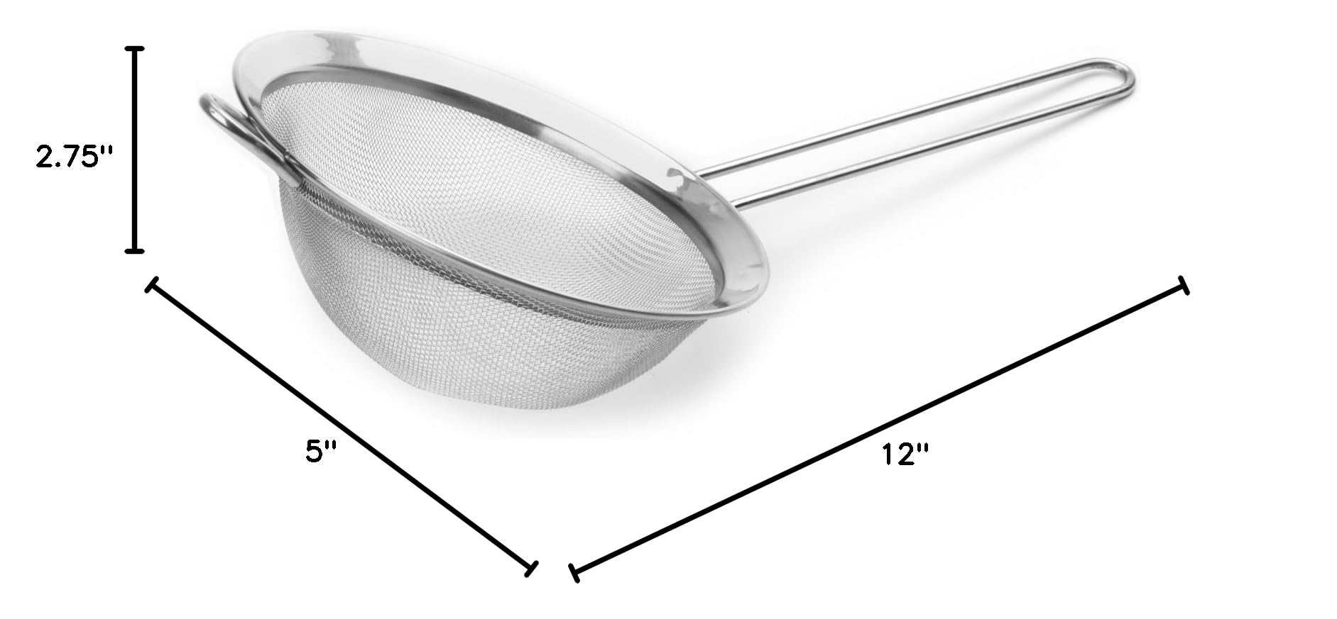 - MEASUREMENT: This strainer weighs 0.8 ounces and has dimensions of 12 x 5 x 2.75 inches.