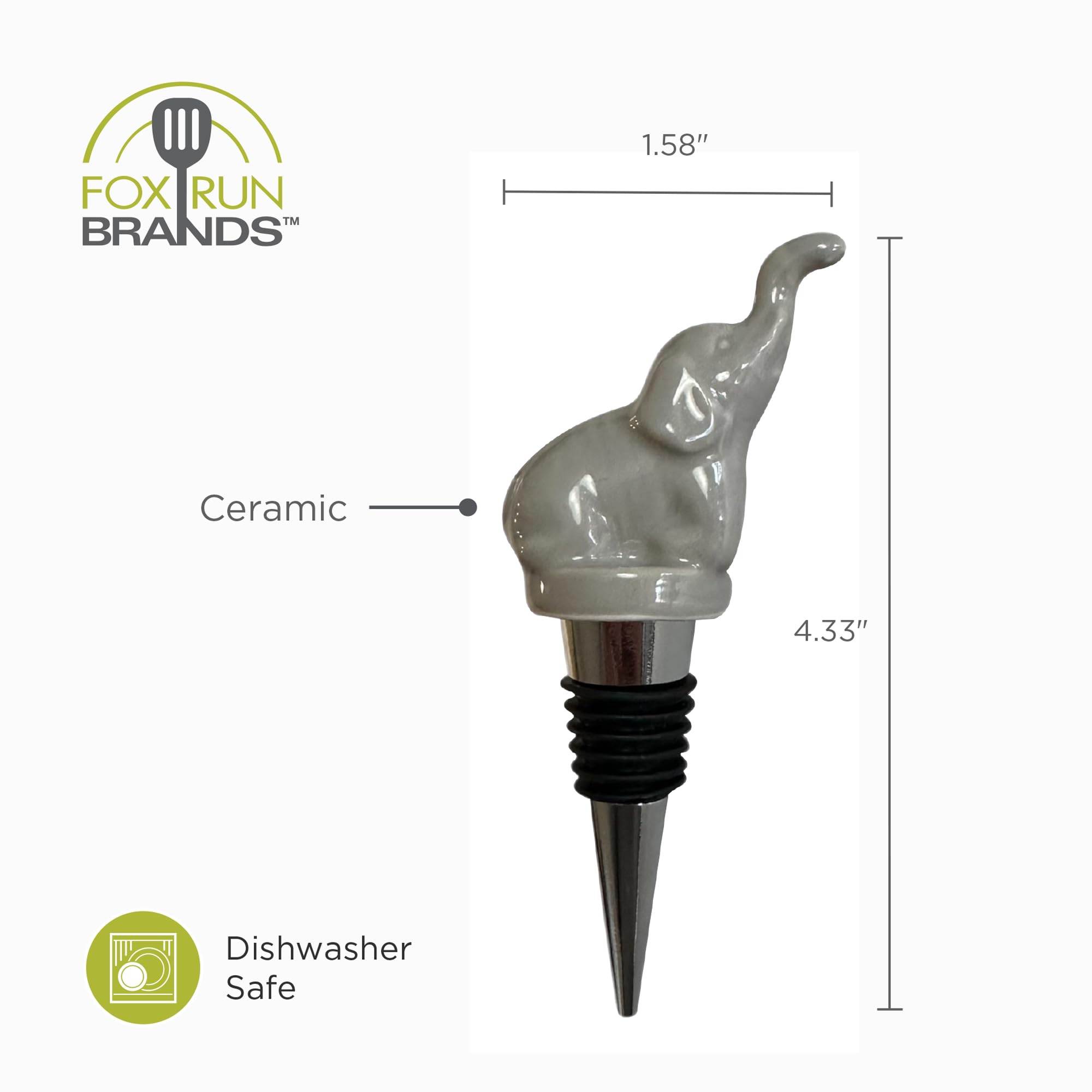 Fox Run Elephant Wine Stopper, Ceramic and Stainless Steel Reusable Bottle Sealer