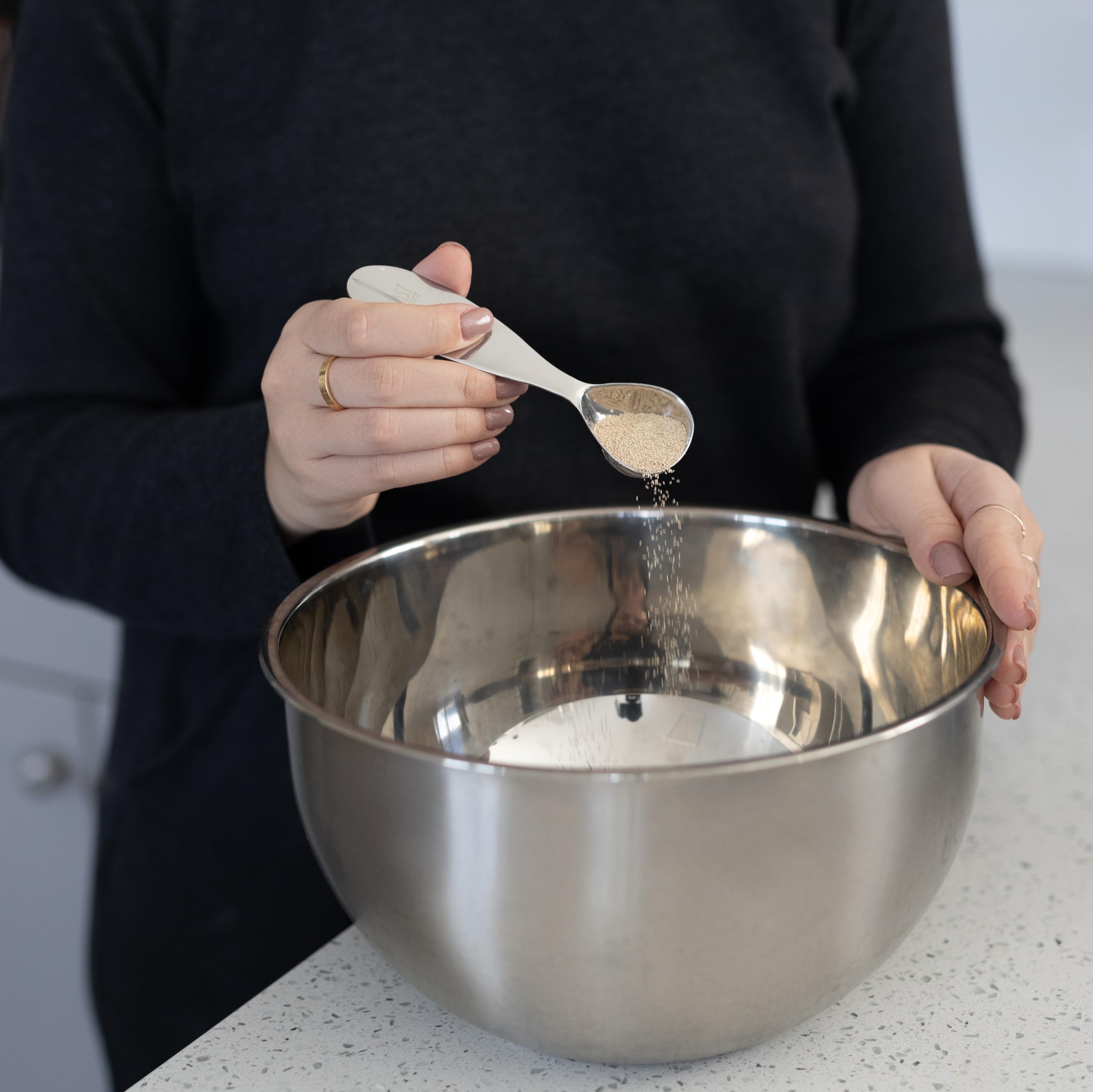 - PERFECT SIZE: This stainless steel yeast spoon measures 2.25 teaspoons (0.25 ounces), which is the same amount in a packet of active dry yeast. No need to use multiple spoons or to make any guesses as this measuring spoon does it right every time!